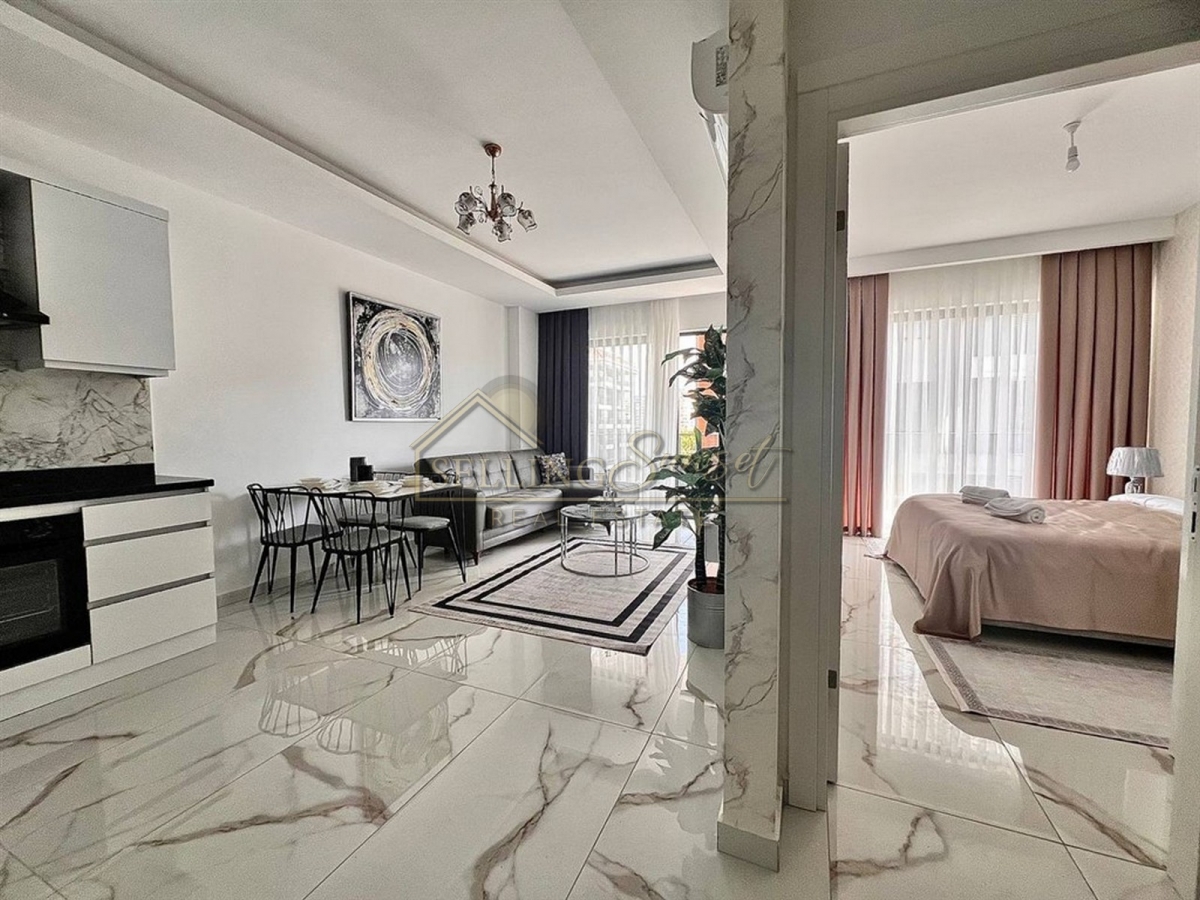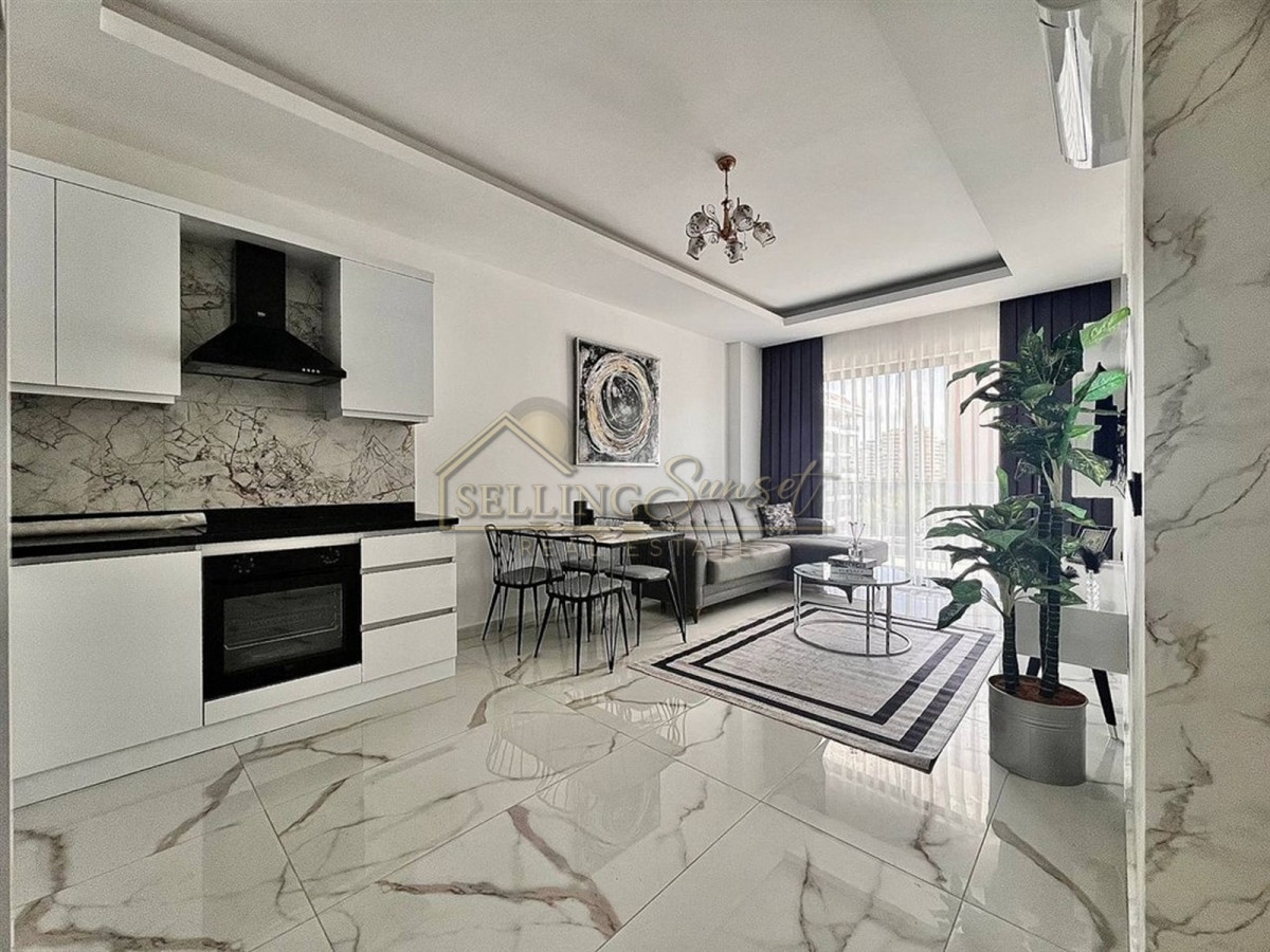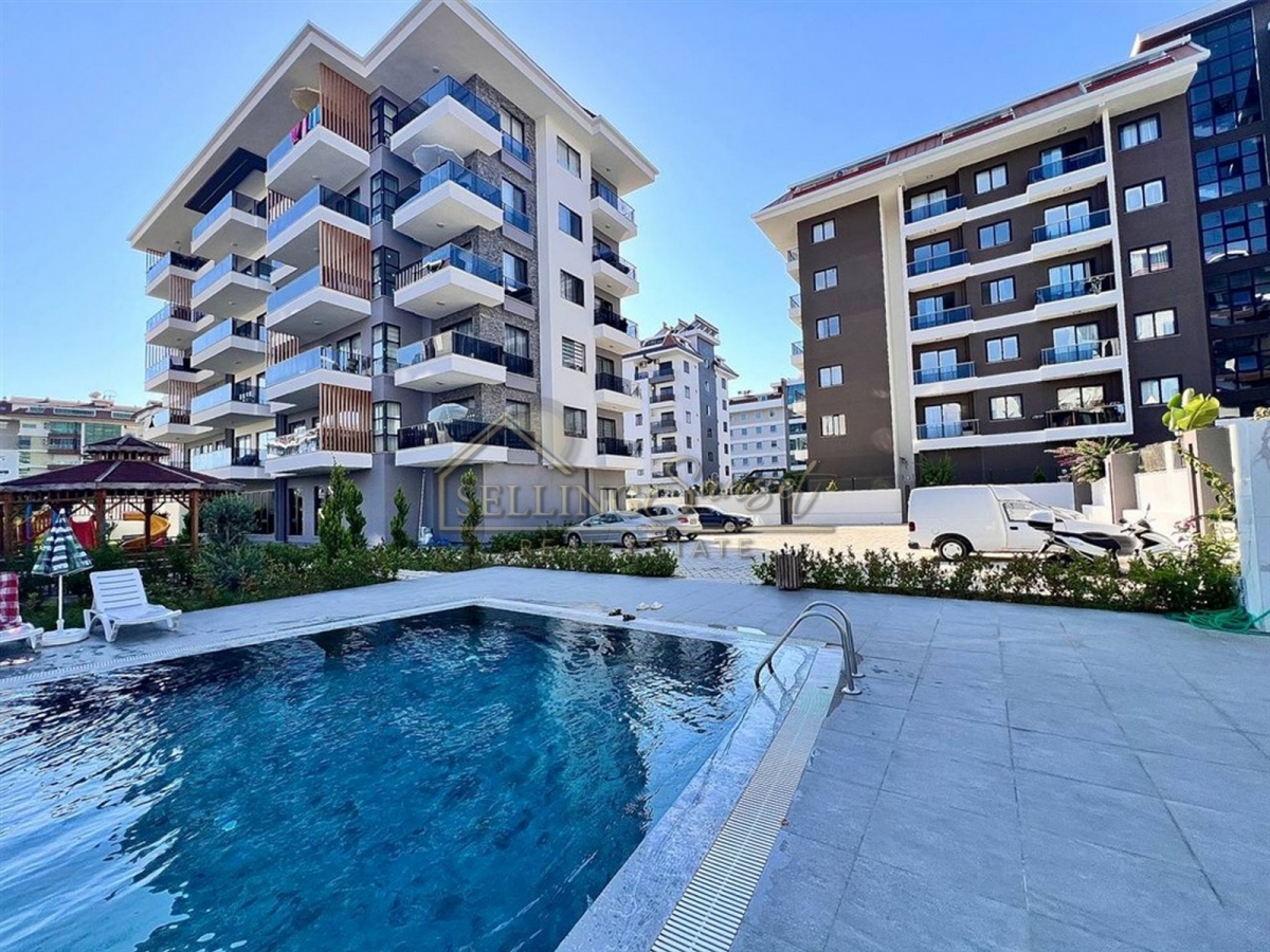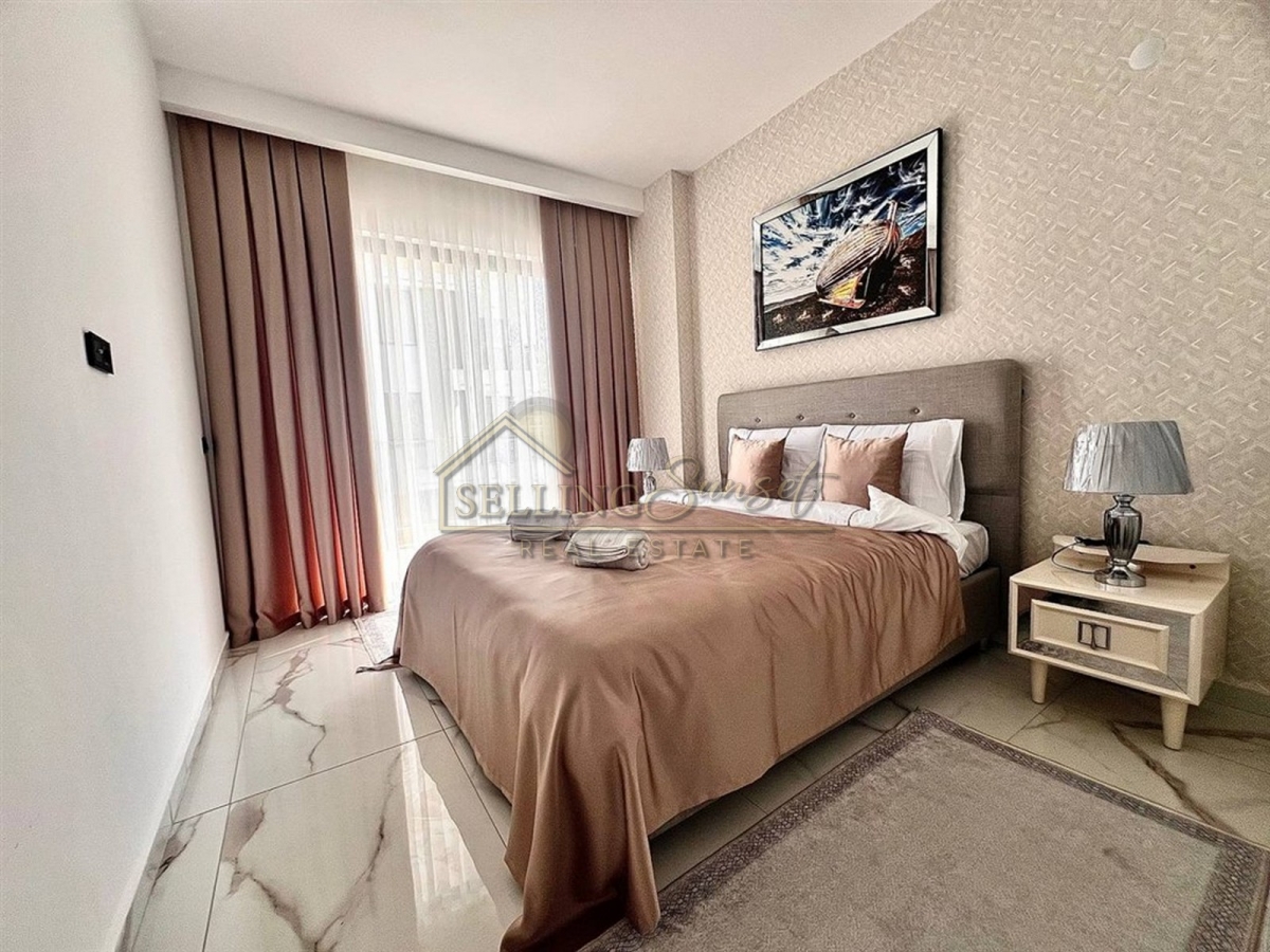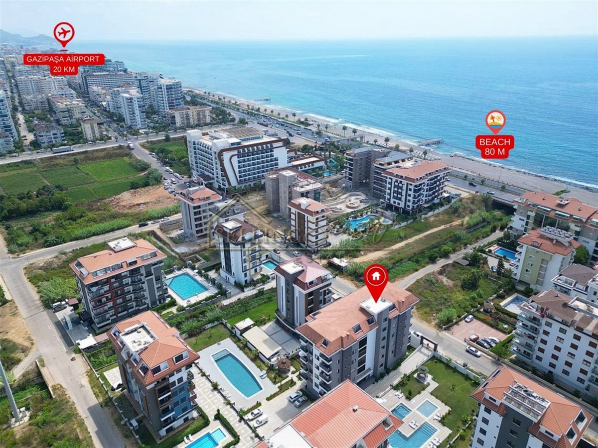 Property Name : 1+1 apartment with furnished and social facilities, sea view, 100 meters from the sea in Kestel