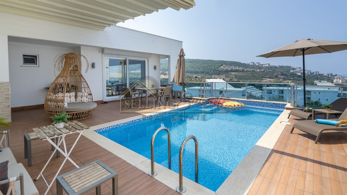 Название свойства : Двухуровневая вилла 3+1 с отдельным бассейном и видом на море, город, природу и горы в районе Каргыджак