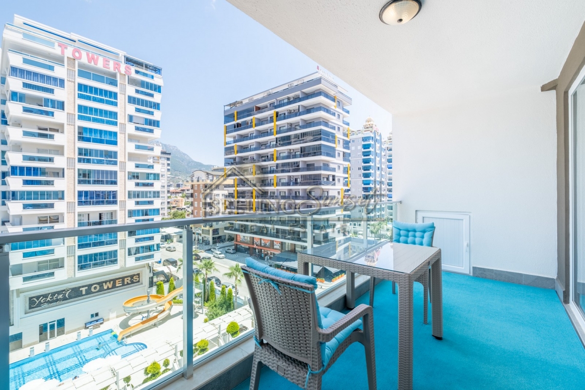 Emlak Adı : Mahmutlar'da denize 300 metre butik sitede şık döşenmiş 1+1 daire